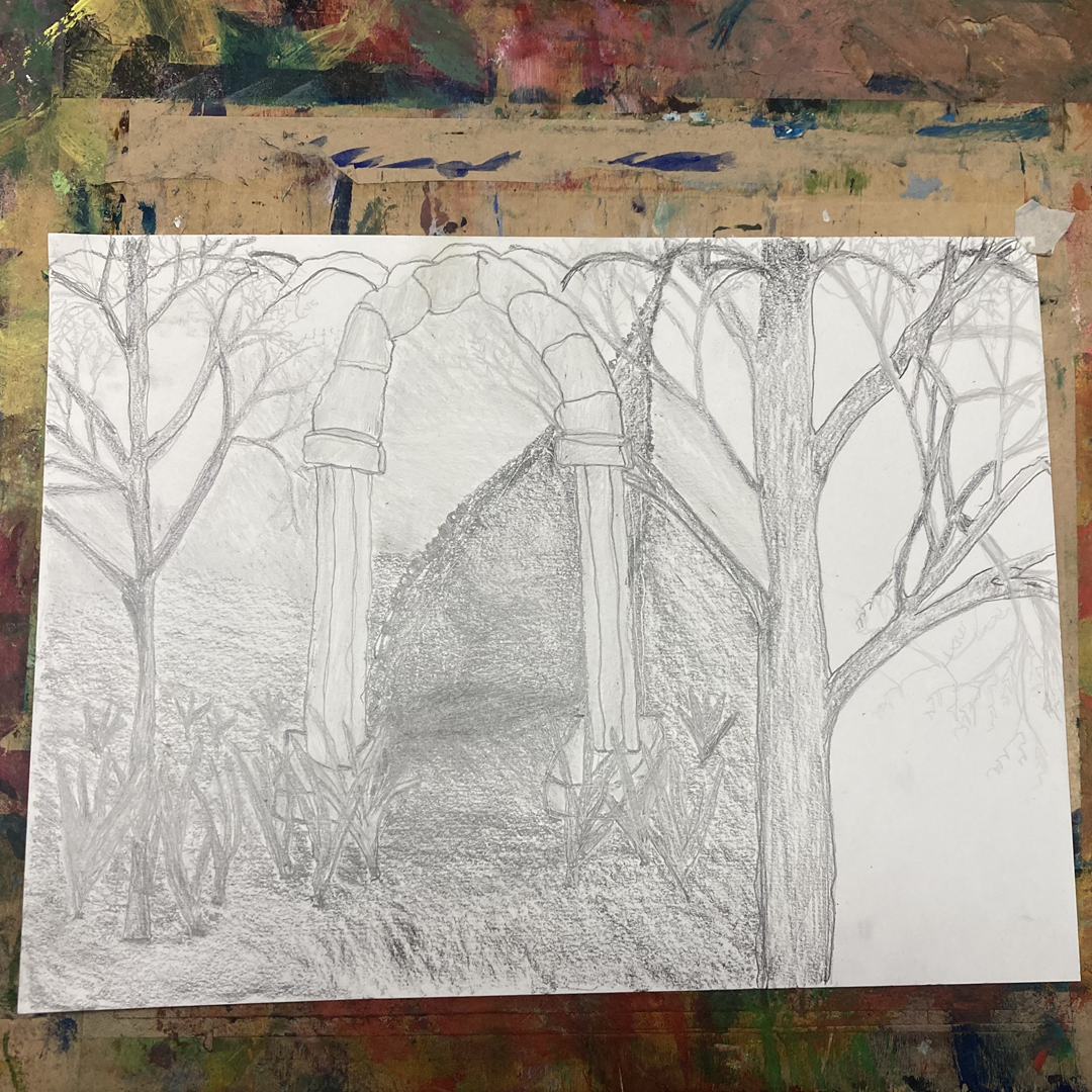 Inspired by memories of his childhood art teacher, Ian was interested in drawing Roman ruins and was keen to explore using pencil.